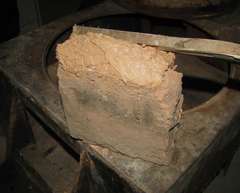 09 Use a flat stick to put clay onto the brick. Wet the brick first if it is very dry..JPG
