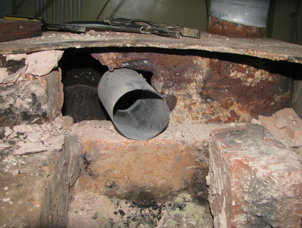26 The pipe points into the heat exchanger toward the corner across from the chimney.JPG