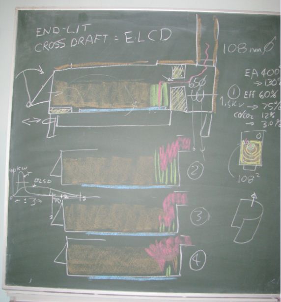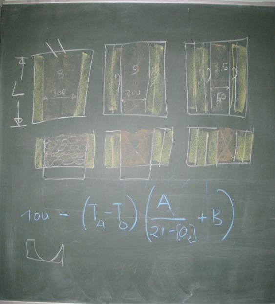51 Blackboard explanation of how using bricks to change the width of the fire changes the kilowatts of heating power.JPG